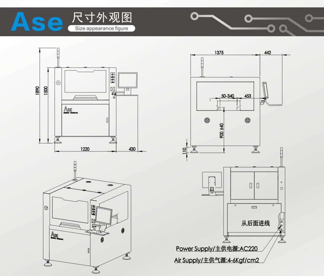 一款高精度全自動錫膏印刷機(High PrecisionAuto Paste Printer)。在表面組裝工藝生產(SMT)中,用于高精度的鋼網印刷或漏版印刷的專用生產設備。
